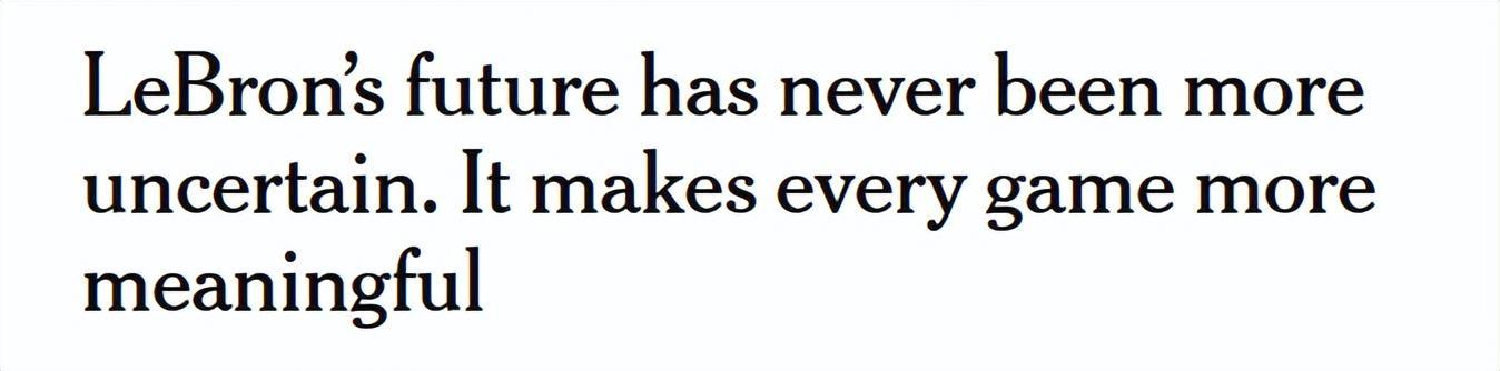 北京时间3月3日,湖人队记Dan Woike撰文谈及詹姆斯的未来。Woike表示,詹姆斯的未来从未如此不确定,而他的湖人生涯很可能在本赛季后结束。以下是他的文章——